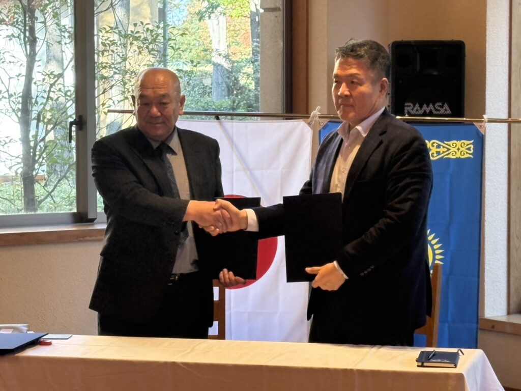 4社共同事業宣言書への署名 2026年2月22日 投稿者: Nagashima Holdings カザフスタン共和国国立農業科学アカデミー、ジャズケン・ジエンバエフの名を冠したカザフスタン植物保護検疫研究所の方々の訪日で各会社の訪問や4社共同事業宣言書に署名を行いました。4社:カザフスタン共和国国立農業科学アカデミー / ジャズケン・ジエンバエフの名を冠したカザフスタン植物保護検疫研究所 / 三進金属工業株式会社 / 株式会社ナガシマホールディングス 右:イエルラン副会長左:坪井 4社にて締結 ネオプランタC前にて撮影 前の記事近畿大学への表敬訪問 コメントを残す コメントをキャンセルメールアドレスが公開されることはありません。 ※ が付いている欄は必須項目ですコメント ※ 名前 ※ メール ※ サイト 次回のコメントで使用するためブラウザーに自分の名前、メールアドレス、サイトを保存する。